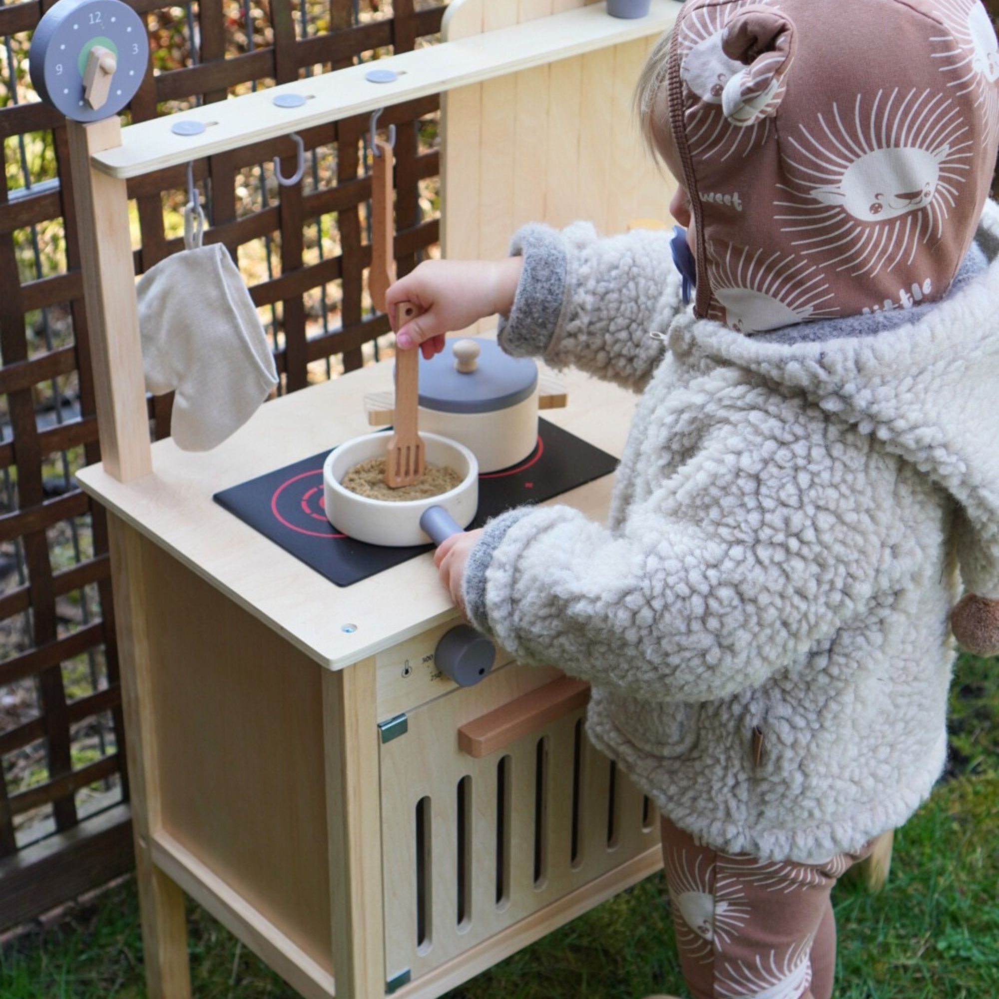 ¡Imitar a los adultos es muy divertido para los niños! Una cocina de madera les permitirá desempeñar el papel de un chef profesional o de una madre o un padre preparando una comida familiar. El juguete también se puede utilizar para jugar en un restaurante o en una tienda . ¡Se puede utilizar de muchas maneras diferentes y el entretenimiento creativo es infinito!