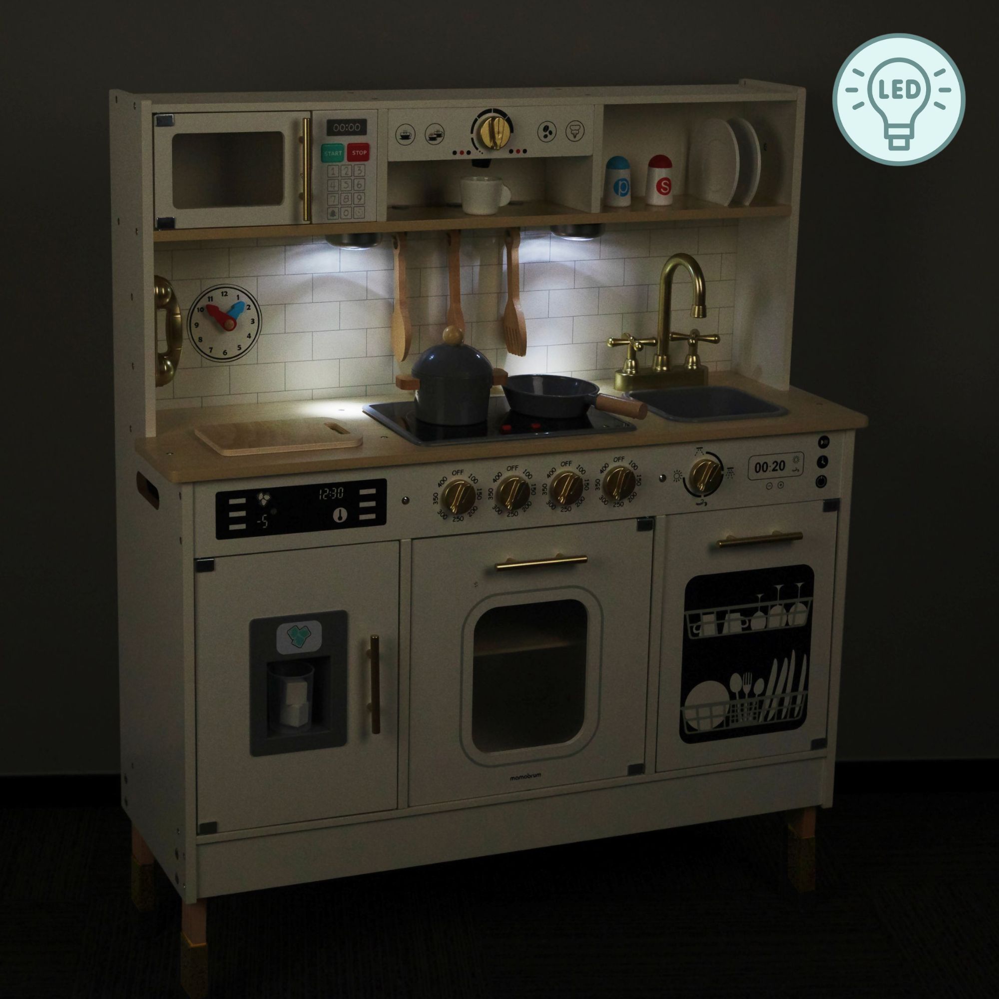 Cocina interactiva de madera XXL para niños con accesorios e iluminación LED - dos niveles