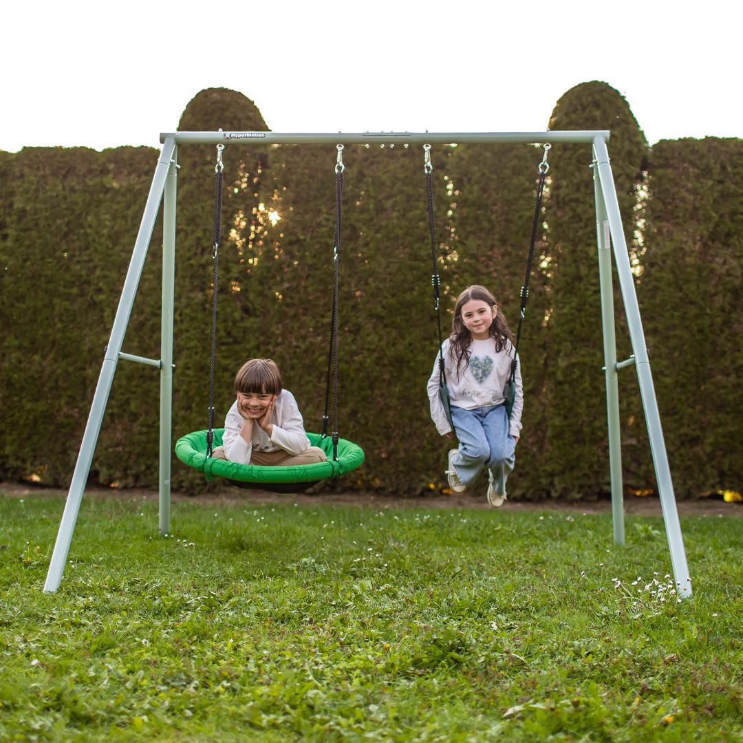 Enriquece el diseño de tu jardín con un columpio seguro y cómodo que entretendrá a tus pequeños y les permitirá gastar el exceso de energía. ¡El modelo con nido de cigüeña y asiento cómodo es la solución perfecta para 2 o incluso 3 personas!