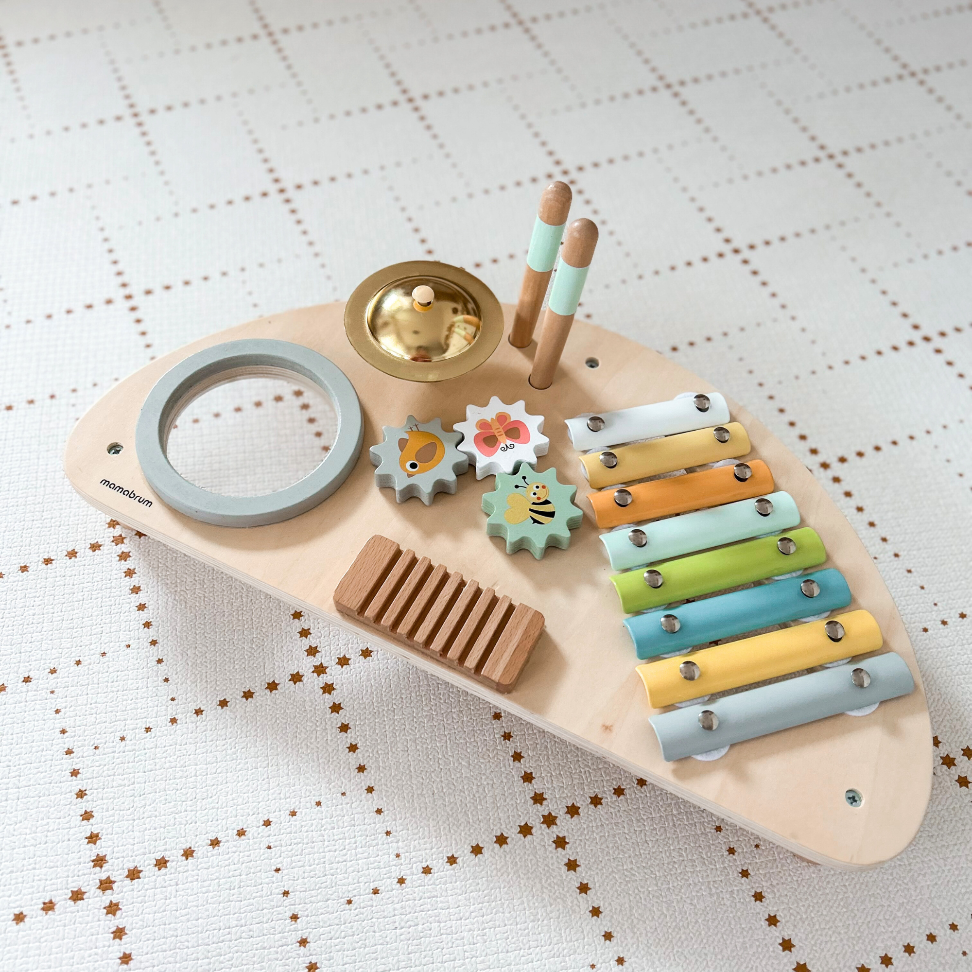 La música mejora el estado de ánimo y calma los sentidos. Este juguete permitirá a su hijo crearla. ¿Qué sonidos hace un tambor? ¿Y el xilófono? El centro musical de madera le permite satisfacer su curiosidad, explorar el rico mundo de los instrumentos y expresarse con melodías sencillas. ¡Un niño pequeño puede utilizar este juguete de muchas maneras diferentes! Es un regalo fantástico que, sin duda, ¡le arrancará una sonrisa a su pequeño!