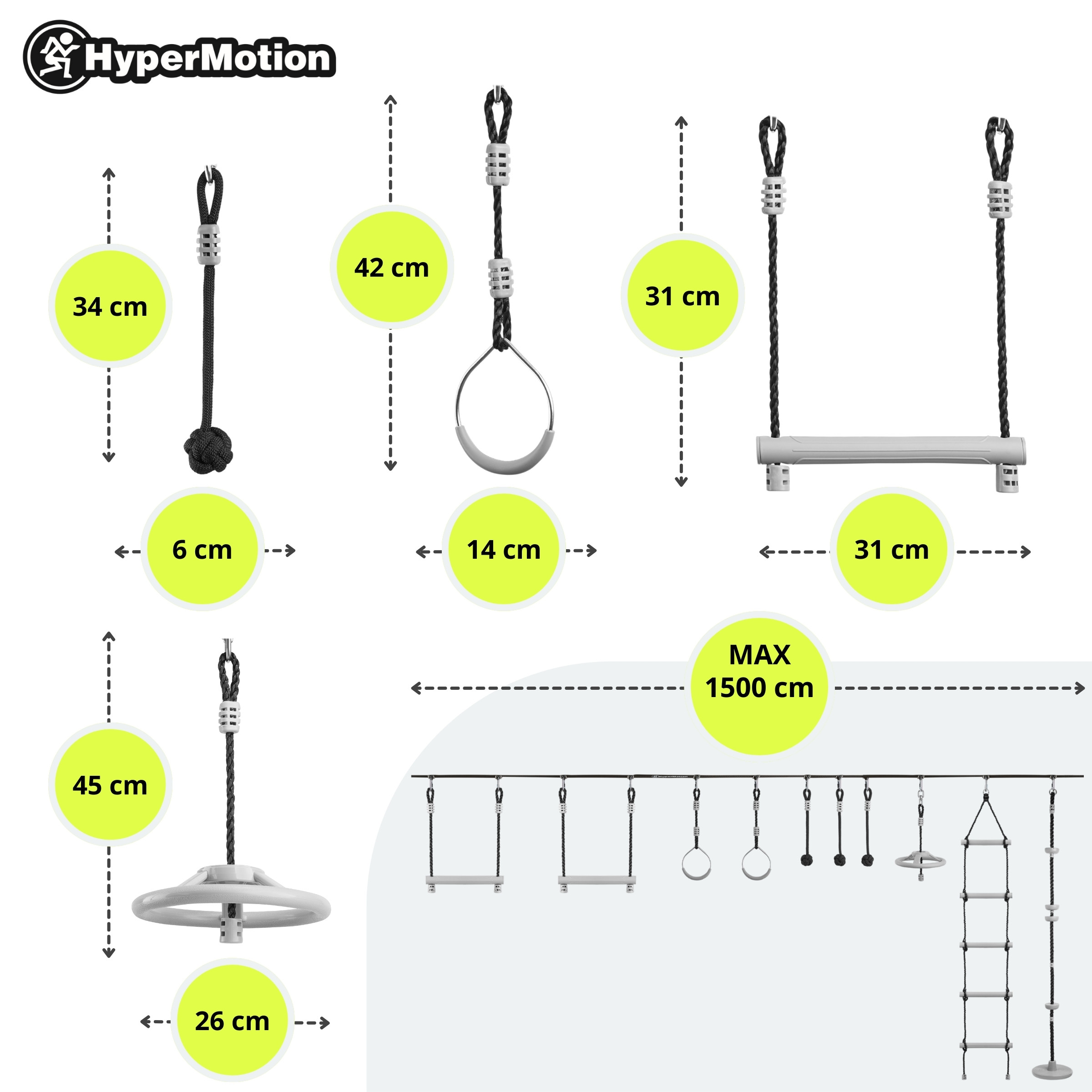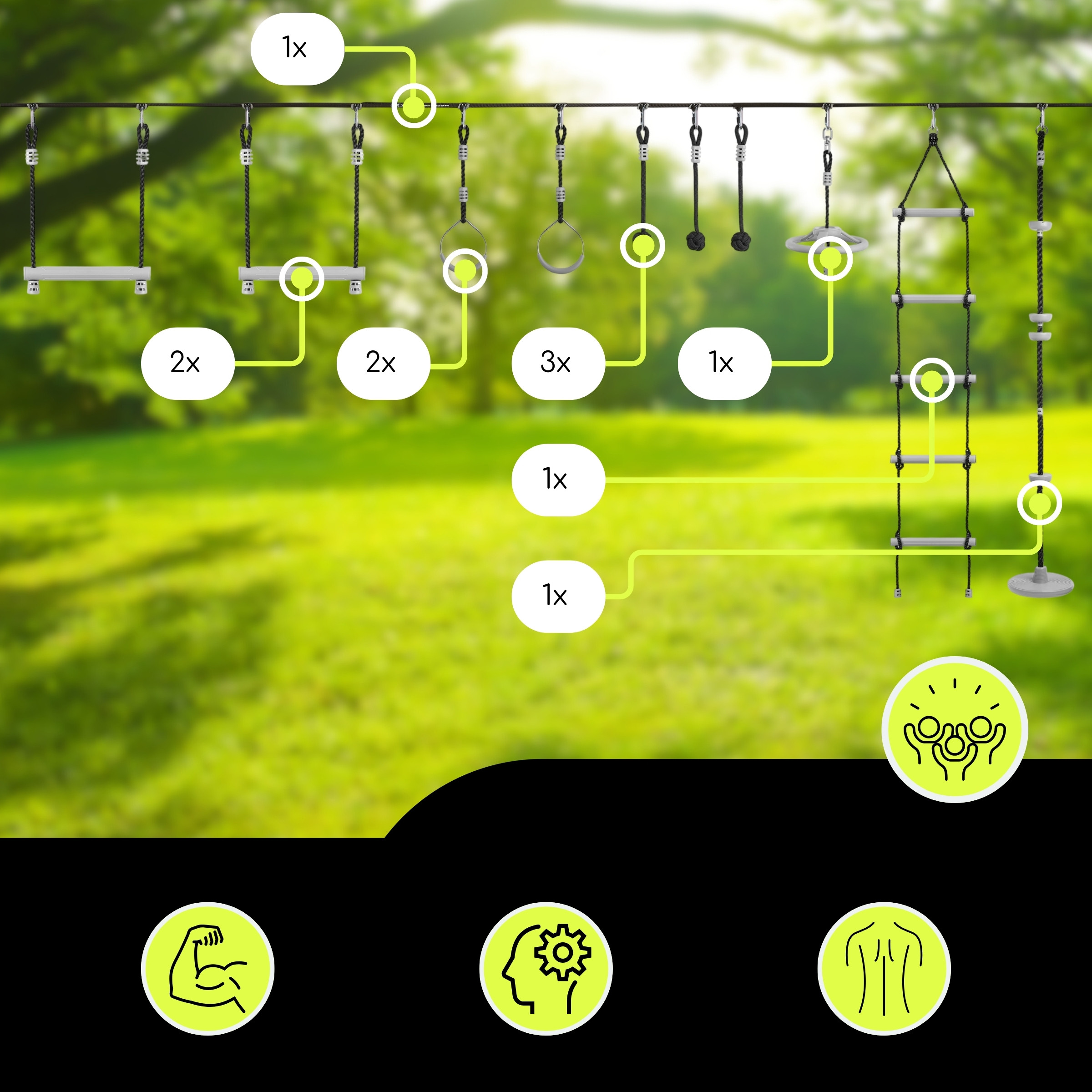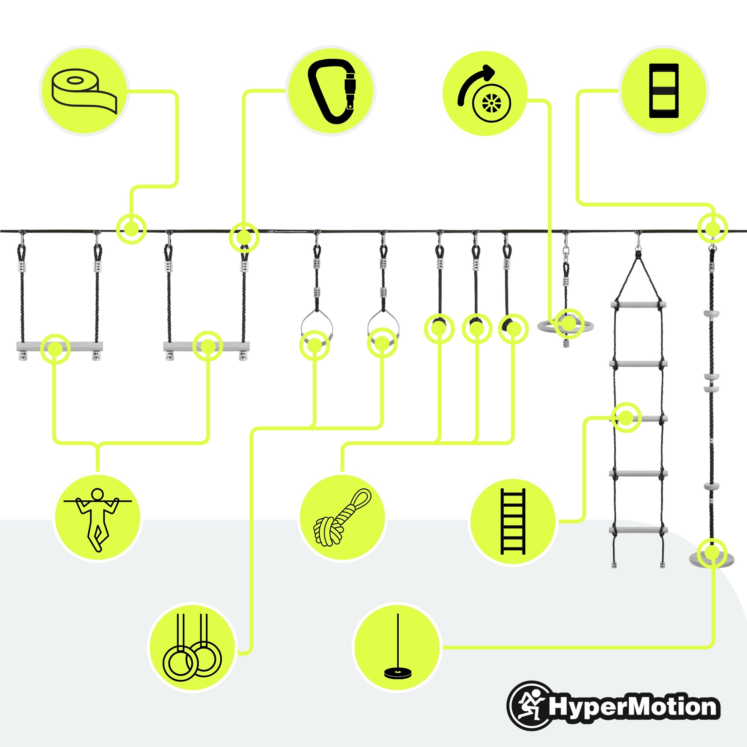 Carrera de obstáculos Ninja para niños - HyperMotion slackline set - 10 obstáculos