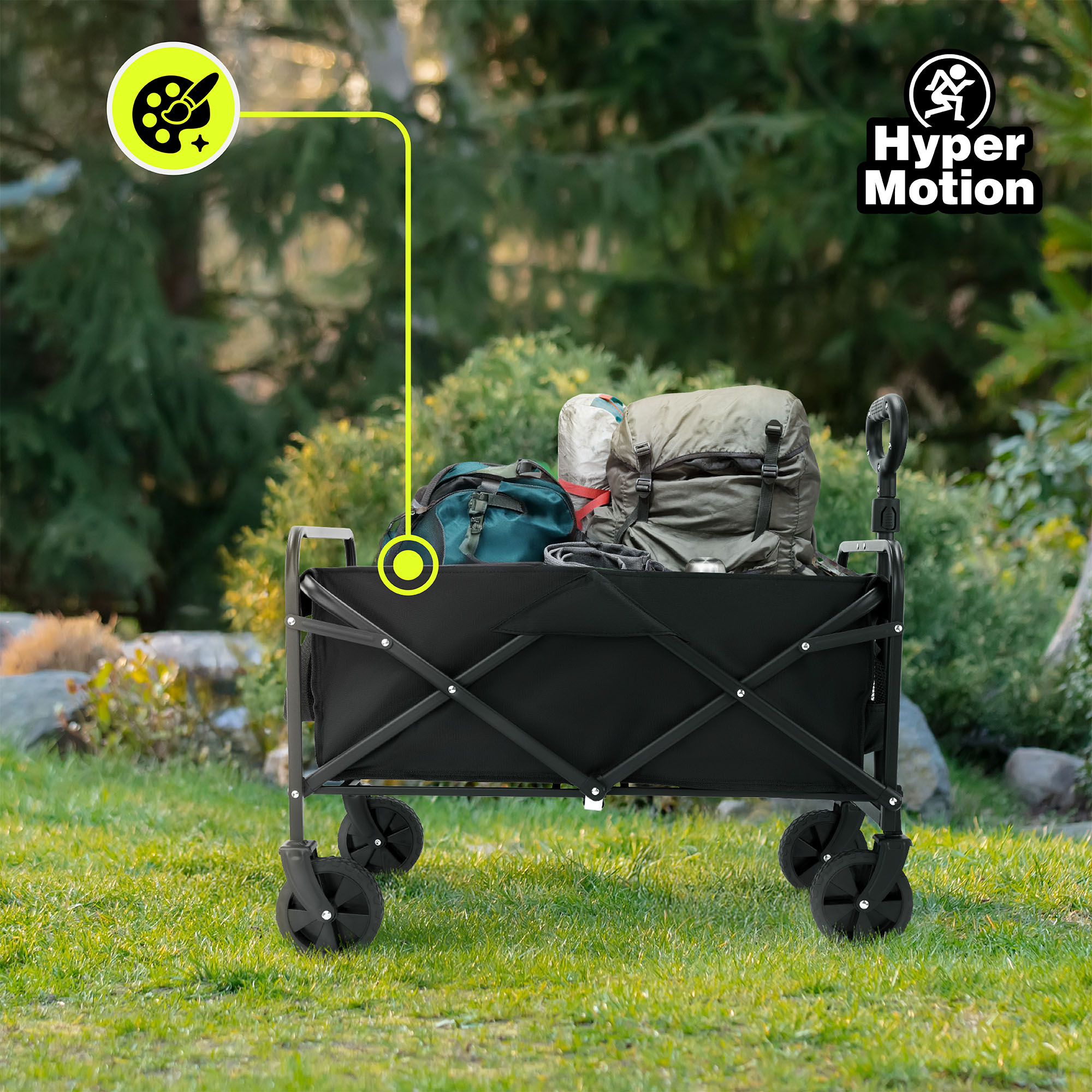 ¡Es hora de ir de picnic! ¿Qué tal una acampada en el bosque? Planifica una atractiva excursión con tu familia. El carrito plegable de senderismo te facilitará la tarea, ya que podrás transportar cómodamente los objetos pesados necesarios sin preocuparte por su estabilidad. ¡Hará que la preparación de un viaje sea mucho más fácil!