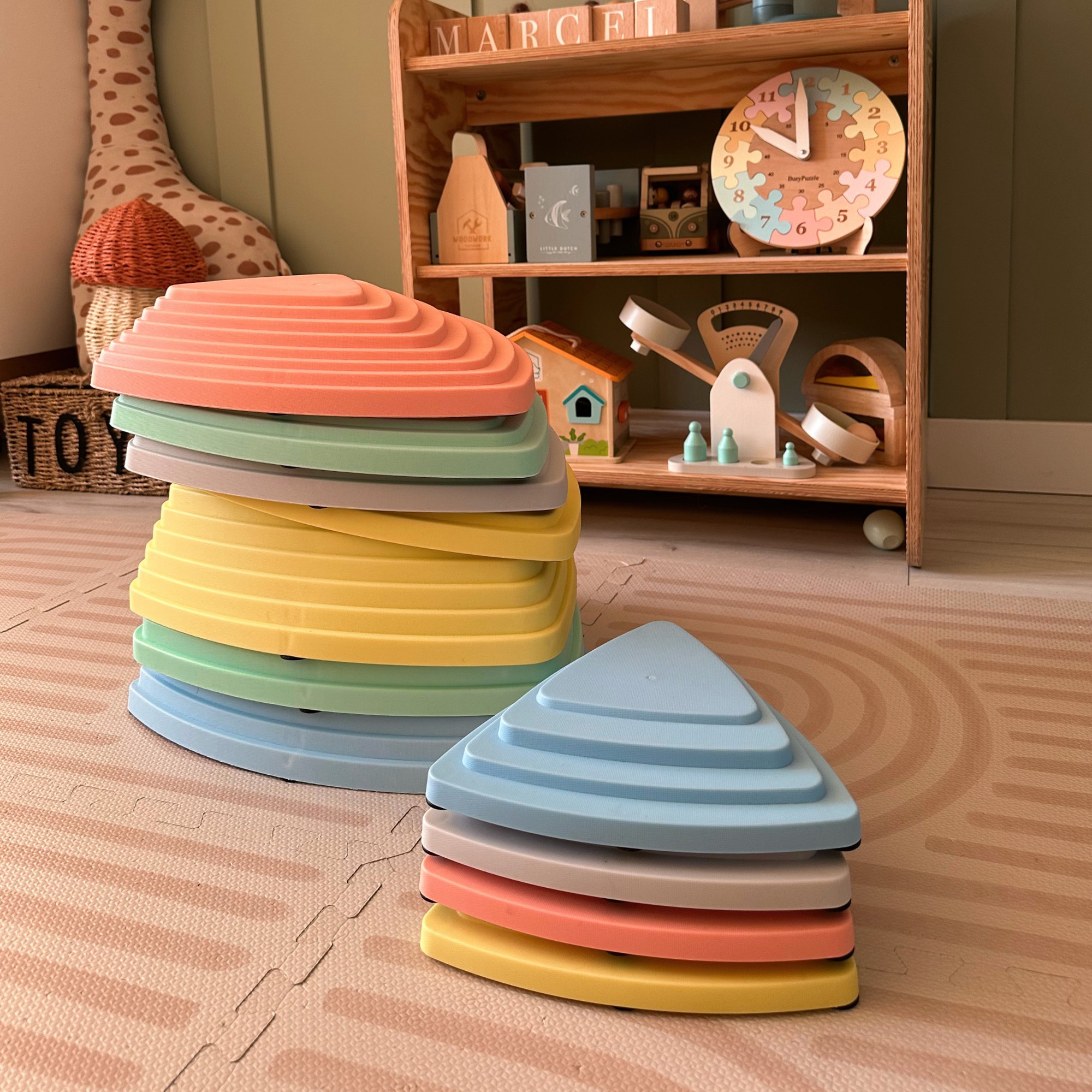 Disponible en colores pastel, el juego de piedras de equilibrio no sólo decora la habitación de los niños, sino que sobre todo proporciona entretenimiento creativo. Las piedras se pueden utilizar de muchas formas diferentes, según las necesidades e ideas de los niños. Las piedras de equilibrio también favorecen el desarrollo motor de los niños pequeños y les dan la oportunidad de ejercitar su sentido del equilibrio.