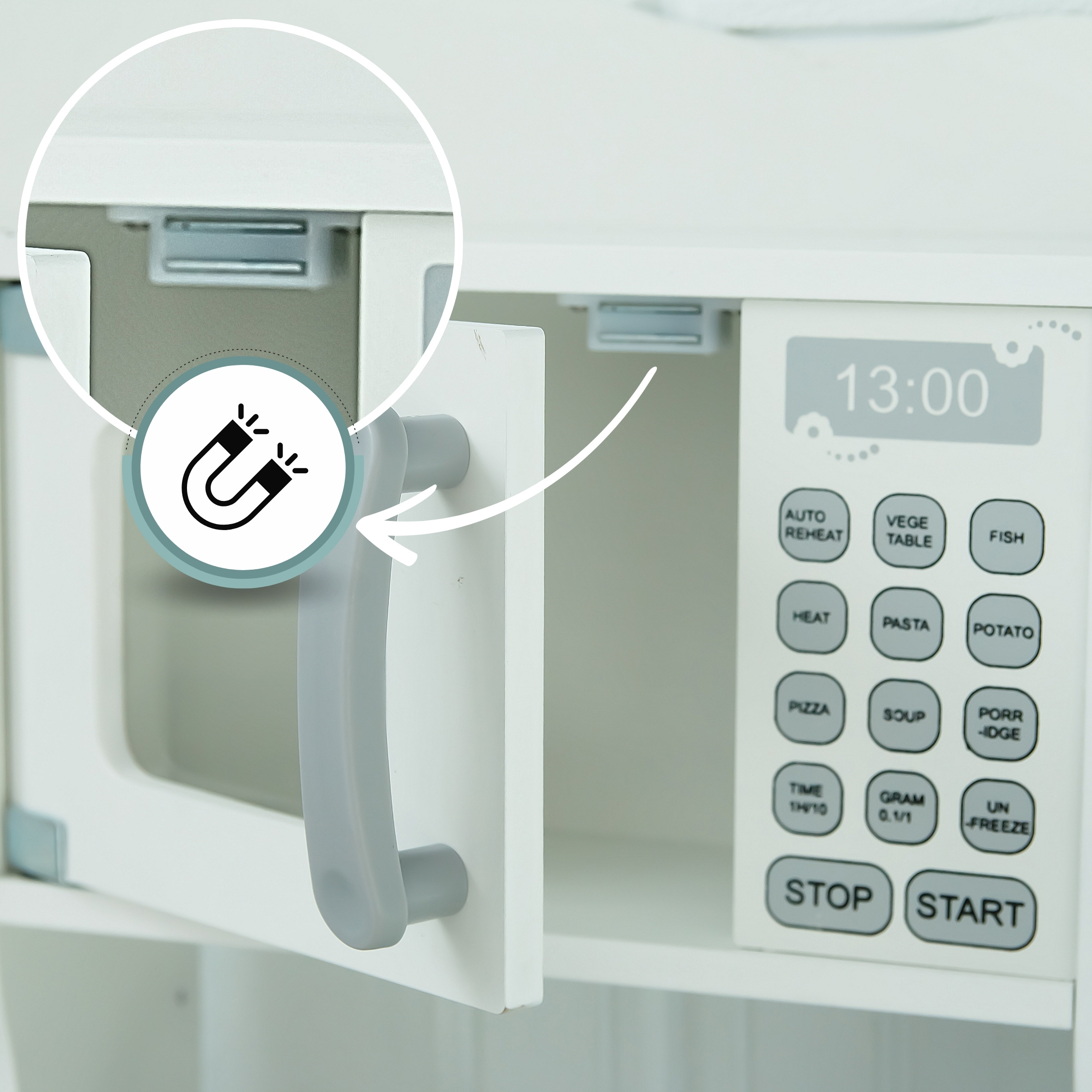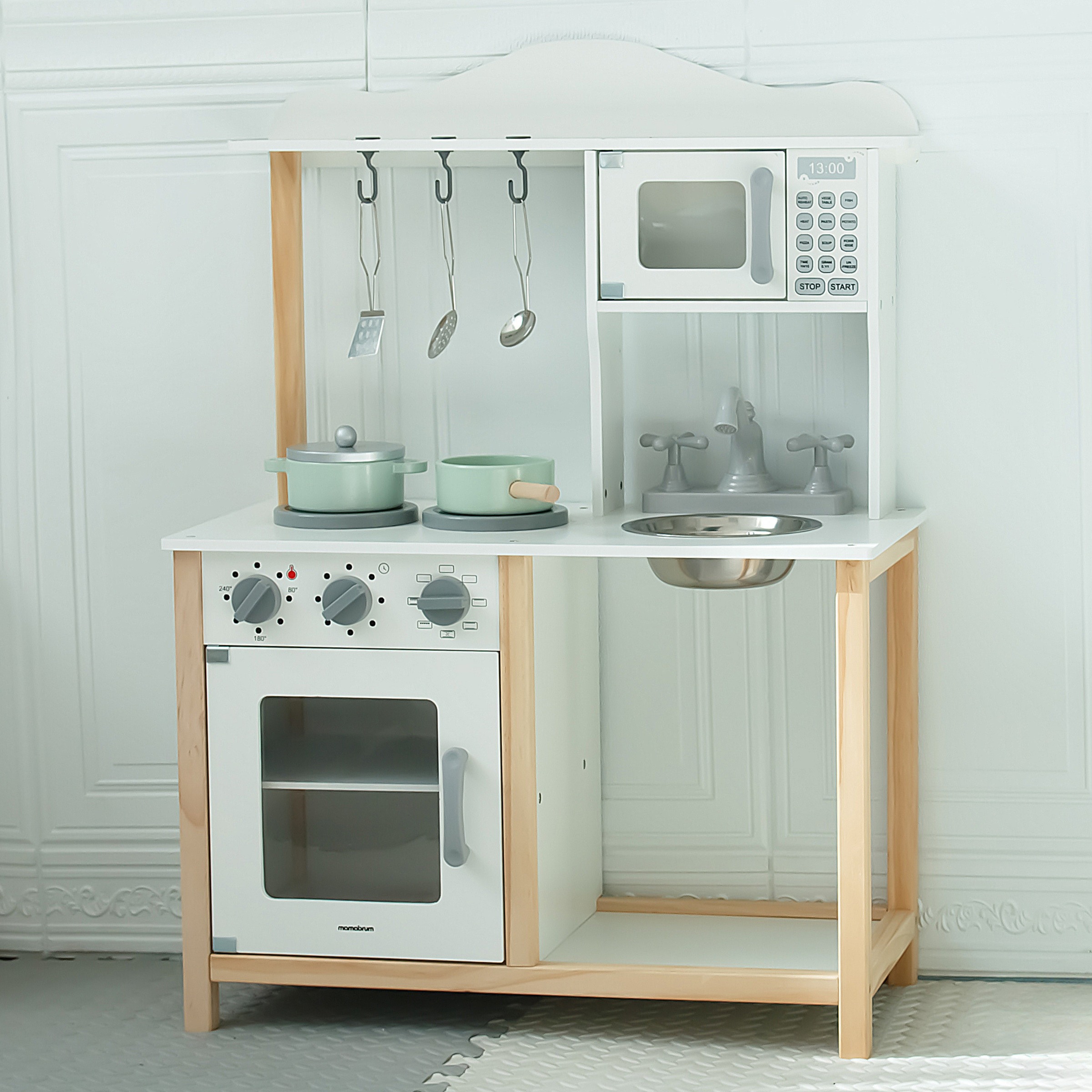 Cocina infantil de madera con microondas