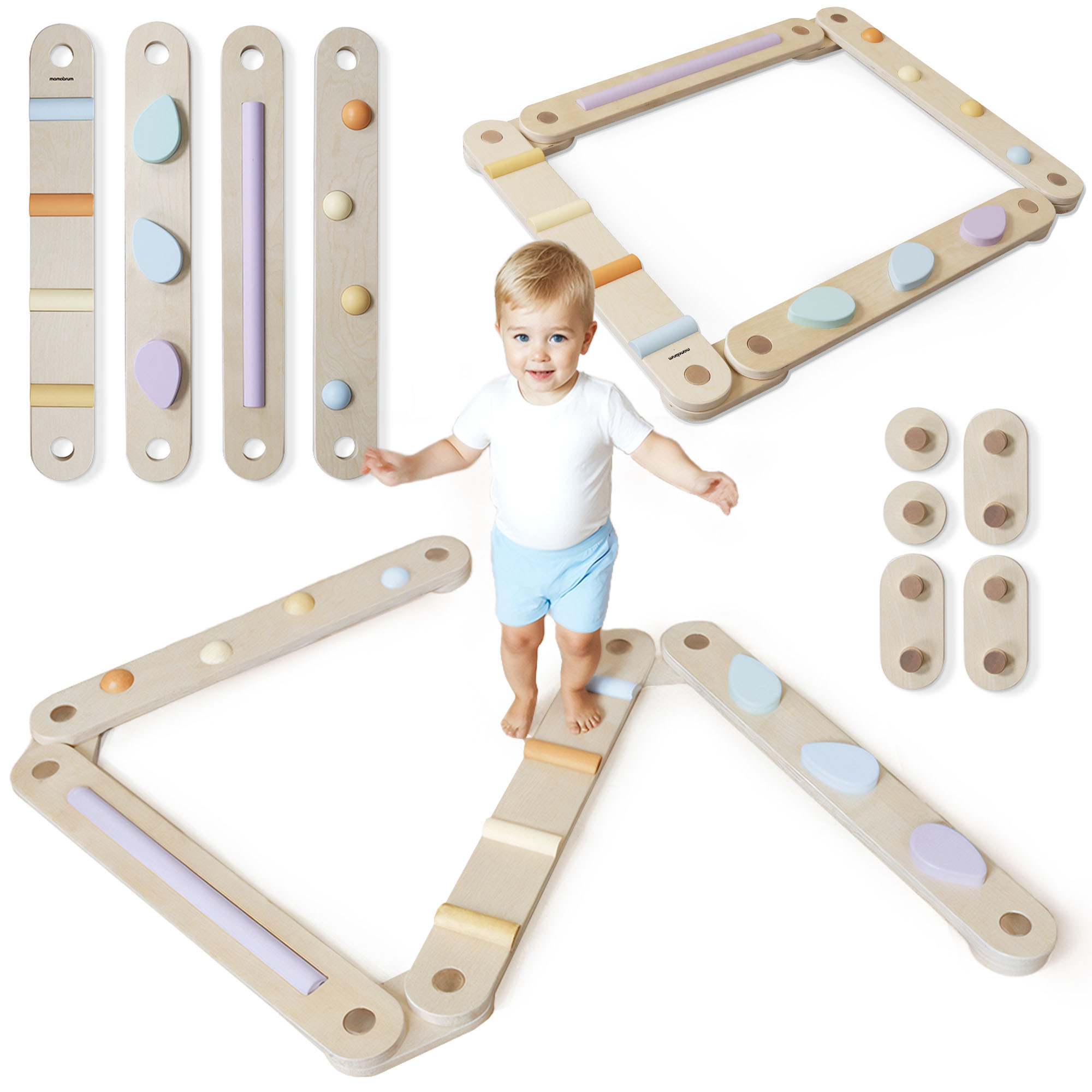 Gran recorrido sensorial de madera - pista de equilibrio - 9 elementos