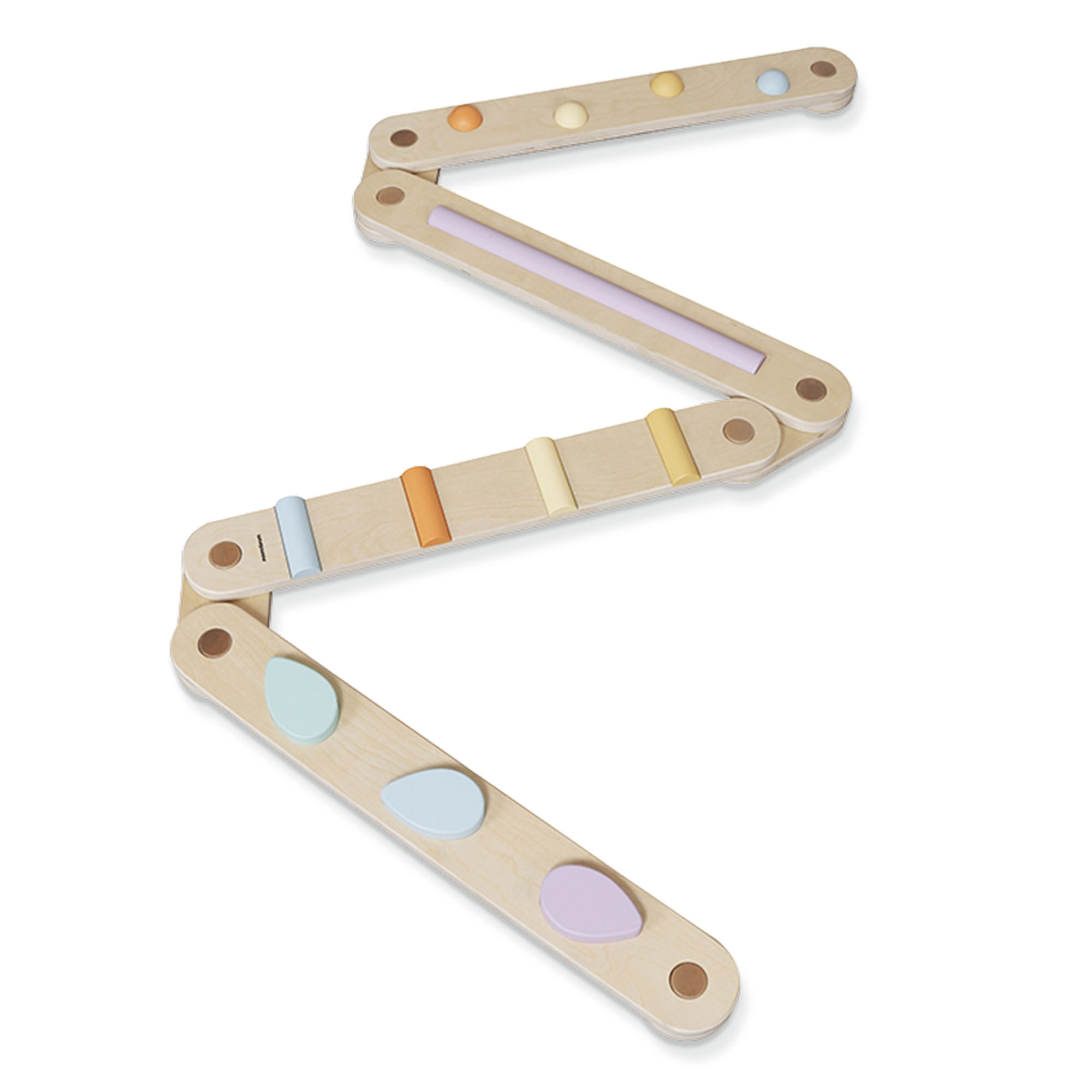 Gracias a las grandes dimensiones de las vigas, la pista no sólo es estable, sino también cómoda de usar: el niño tiene espacio suficiente para dar pasos con seguridad, practicar el equilibrio y desarrollar la confianza. Cuando termina el tiempo de juego, los elementos pueden desmontarse fácilmente y guardarse de forma compacta.