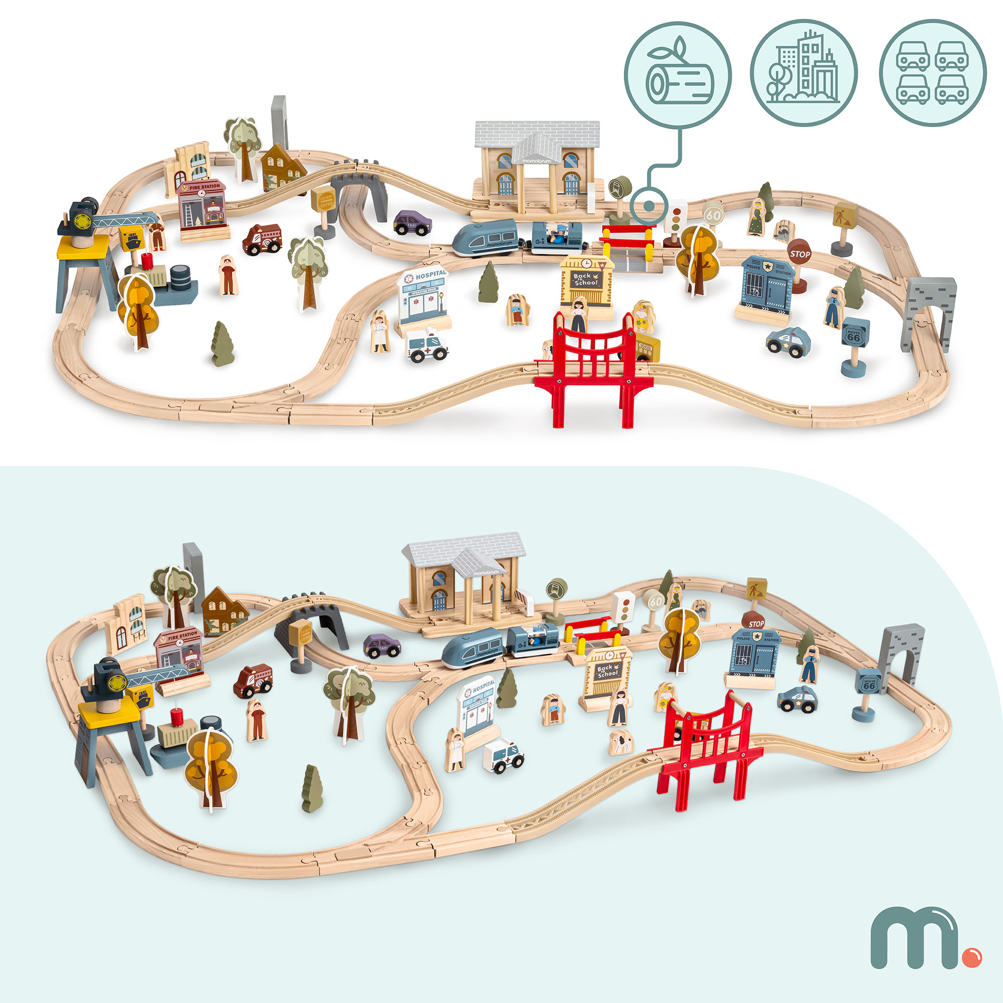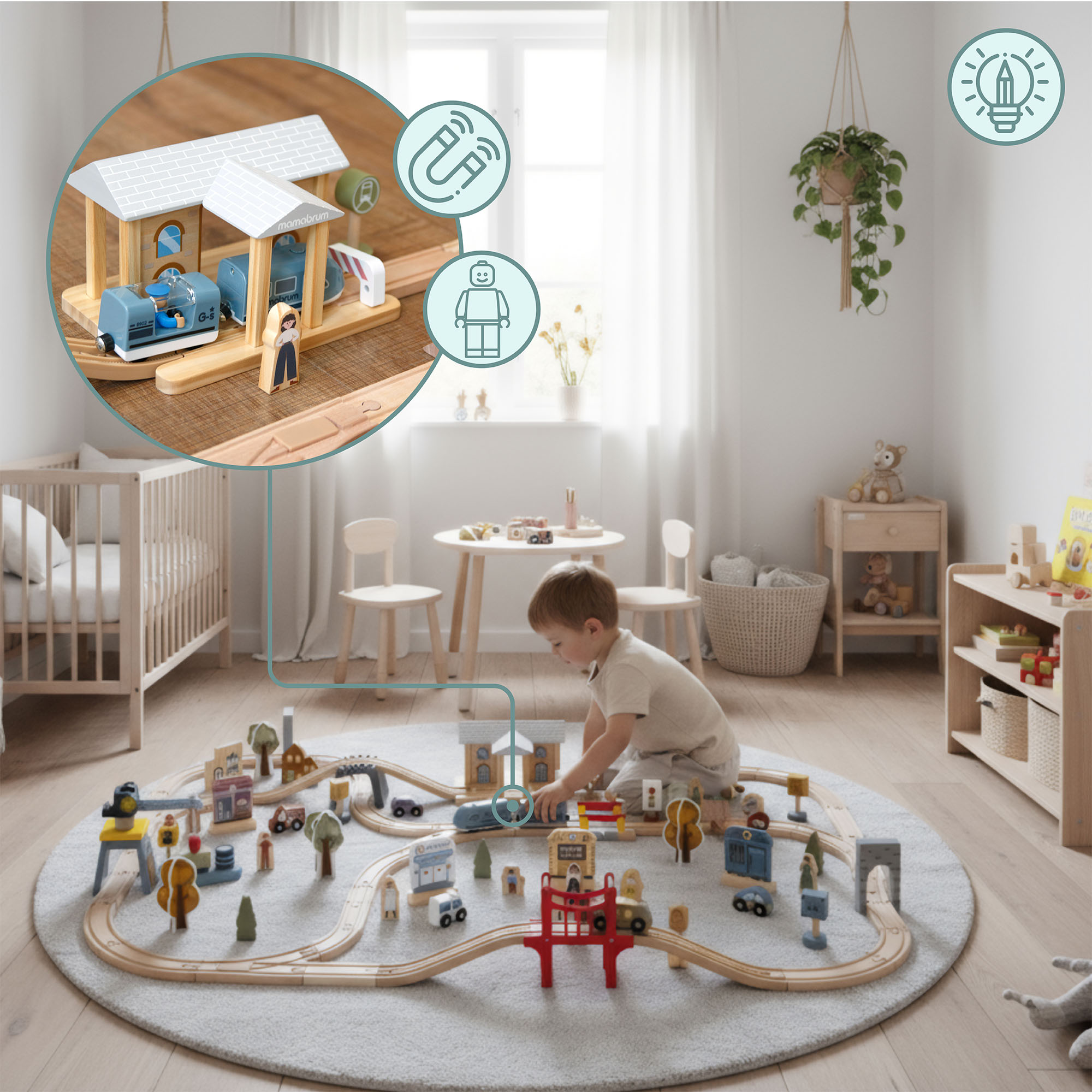 Vías y trenes para niños.