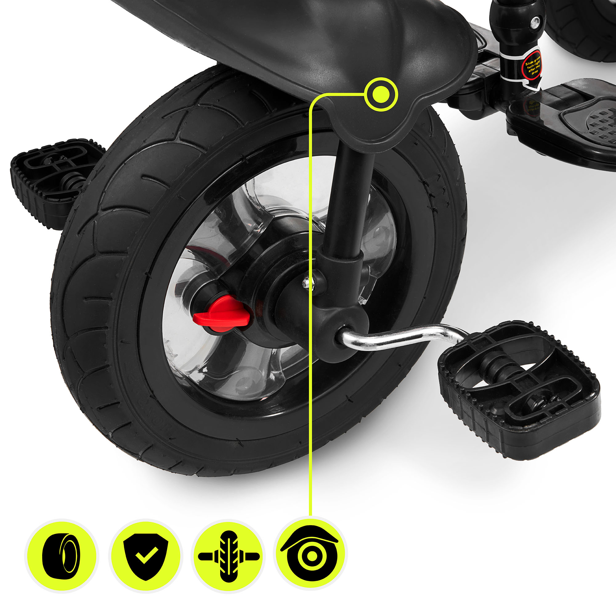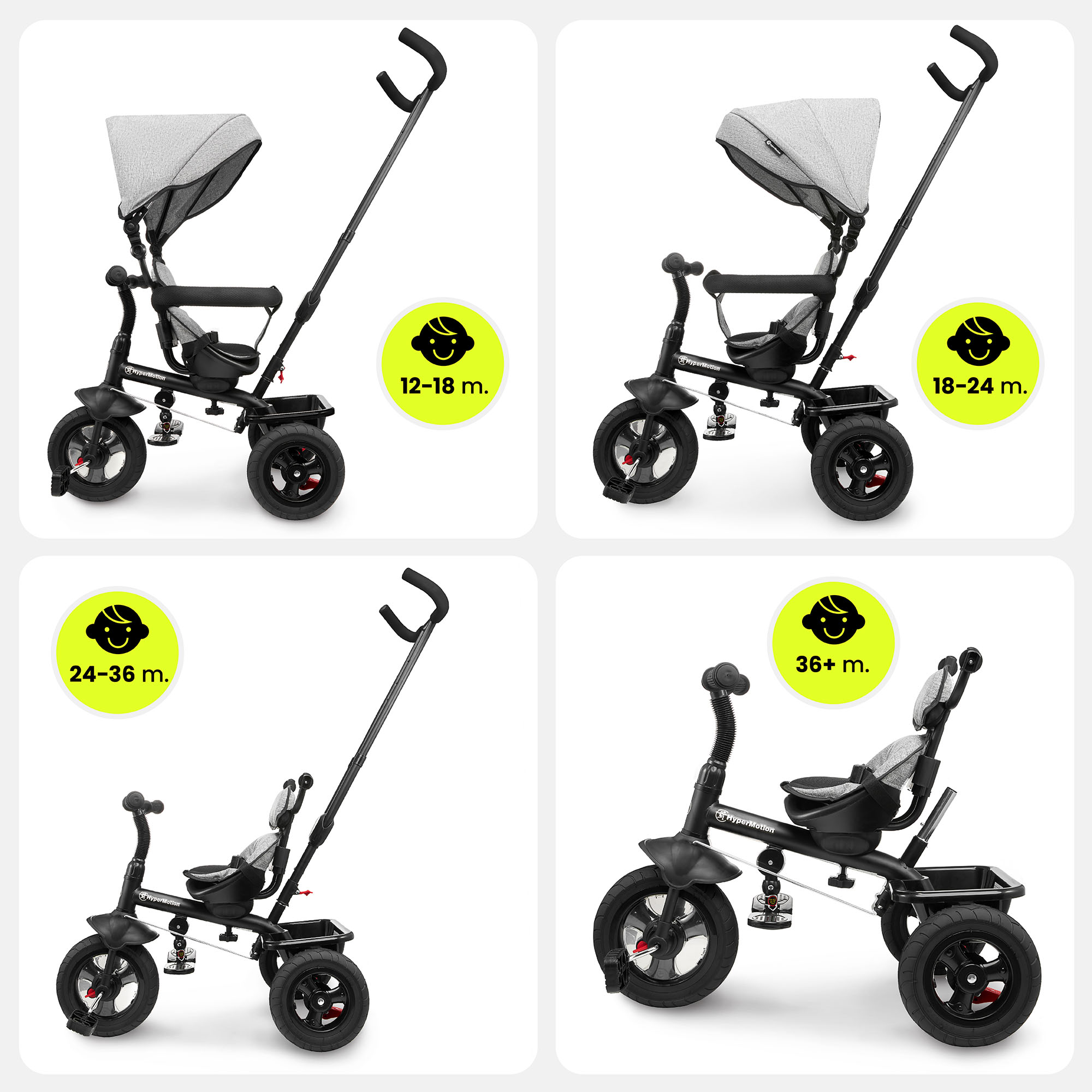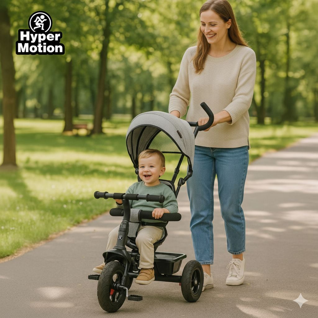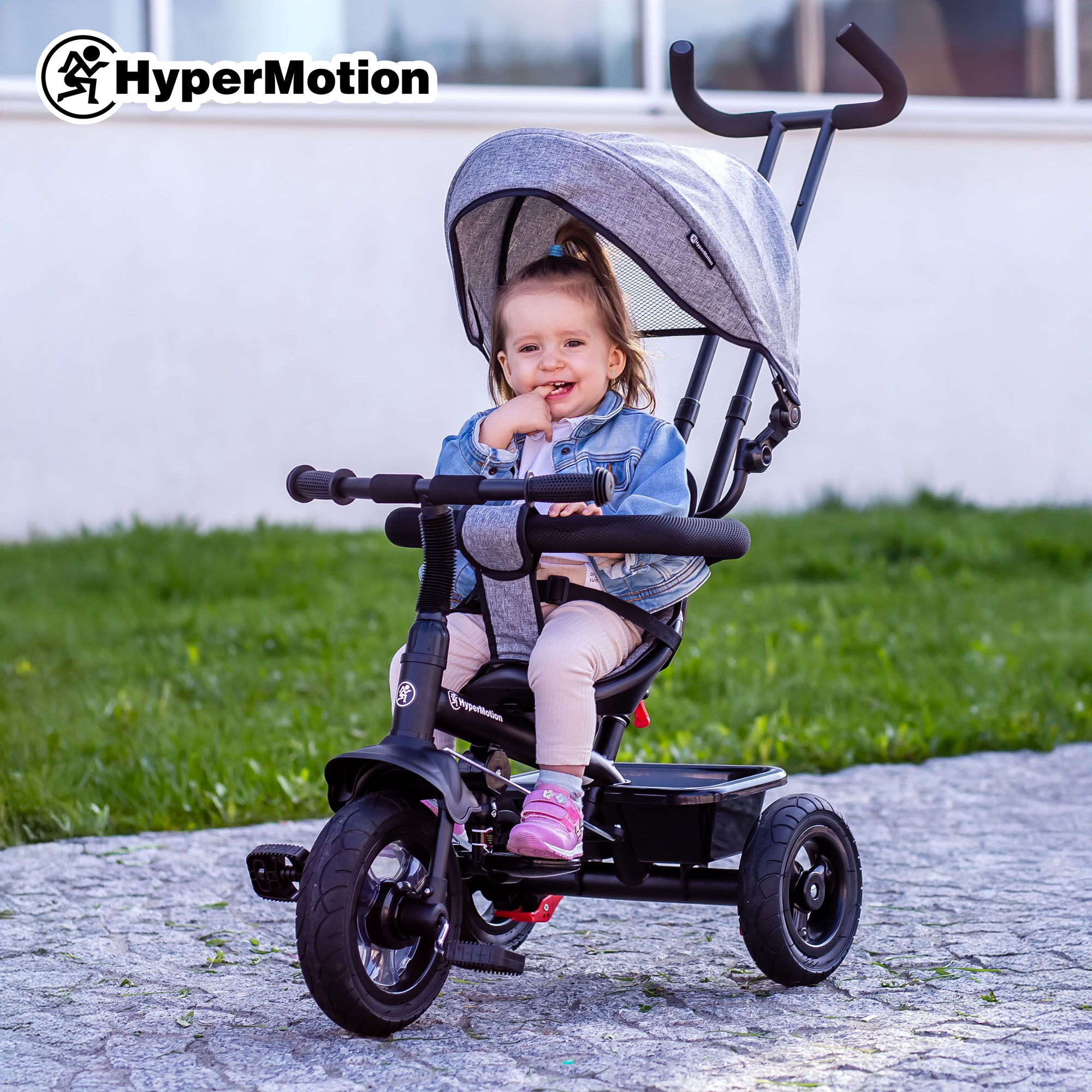 Triciclo para niños de 1 a 4 años - TOBI FREY - color gris - giratorio - ruedas hinchables + empujador